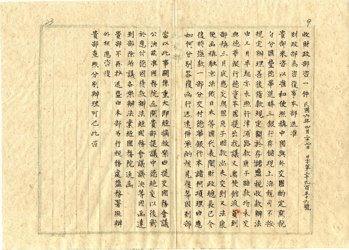 財政部(民國06年04月)。[件名:議決應付德款辦法]。《數位典藏與數位學習聯合目錄》。http://catalog.digitalarchives.tw/item/00/0b/56/03.html(2025/05/20瀏覽)。