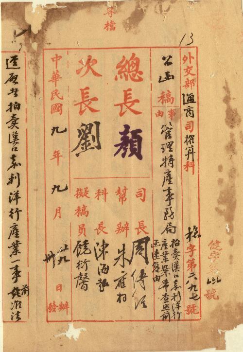 外交部(民國09年09月)。[件名:拍賣漢口嘉利洋行產業案希查照前函速復由]。《數位典藏與數位學習聯合目錄》。http://catalog.digitalarchives.tw/item/00/0b/58/04.html(2025/05/20瀏覽)。
