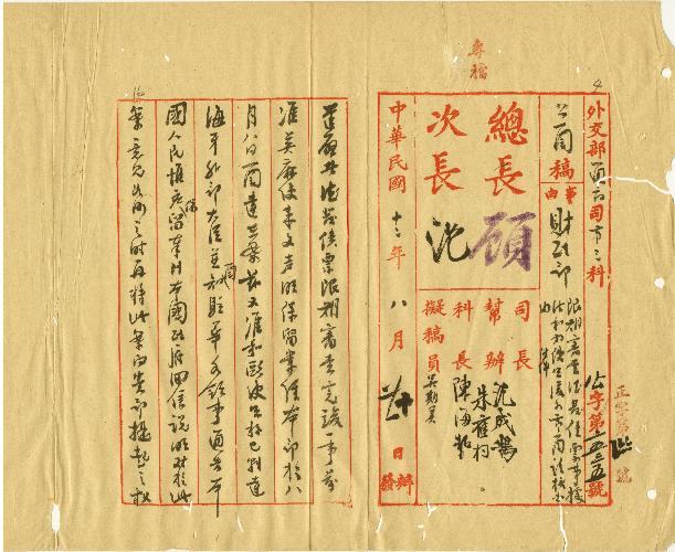 外交部(民國12年08月)。[件名:限期審查德發債票事據法和兩使照復各節函請核辦由]。《數位典藏與數位學習聯合目錄》。http://catalog.digitalarchives.tw/item/00/0b/58/9d.html(2025/05/20瀏覽)。