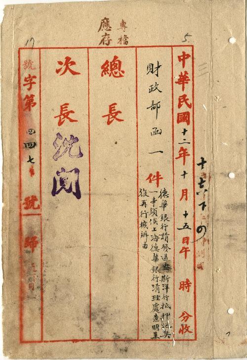 財政部(民國12年10月)。[件名:德華銀行請發還盎斯洋行抵押地契一事須俟上海德華銀行清理處查明呈復再行核辦由]。《數位典藏與數位學習聯合目錄》。http://catalog.digitalarchives.tw/item/00/0b/59/28.html(2025/05/20瀏覽)。