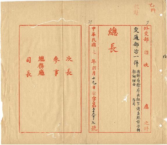 交通部(民國07年04月)。[件名:德郵局餘房出租事請查照前咨轉飭辦理由]。《數位典藏與數位學習聯合目錄》。http://catalog.digitalarchives.tw/item/00/0b/59/7f.html(2025/05/20瀏覽)。