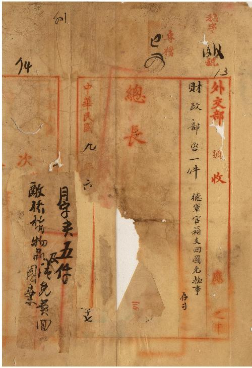 財政部(民國09年06月)。[件名:德軍官箱支回國免驗事]。《數位典藏與數位學習聯合目錄》。http://catalog.digitalarchives.tw/item/00/0b/5c/4a.html(2025/05/20瀏覽)。