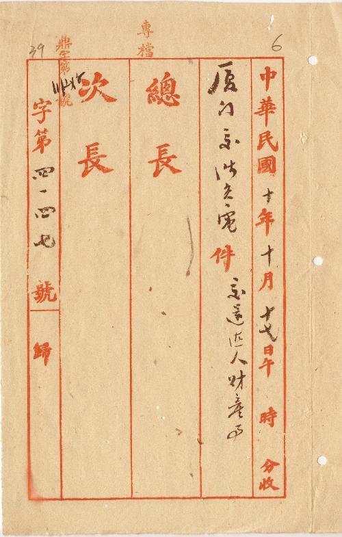 廈門交涉員(民國10年10月)。[件名:交還德人財產事由]。《數位典藏與數位學習聯合目錄》。http://catalog.digitalarchives.tw/item/00/0b/5d/05.html(2025/05/20瀏覽)。