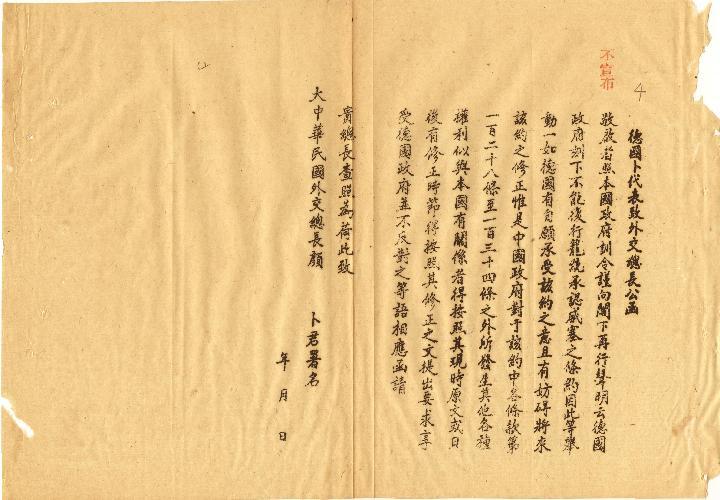 德代表卜爾熙(民國10年05月)。[件名:關於引用威塞條約各款事]。《數位典藏與數位學習聯合目錄》。http://catalog.digitalarchives.tw/item/00/0b/61/cd.html(2025/05/20瀏覽)。