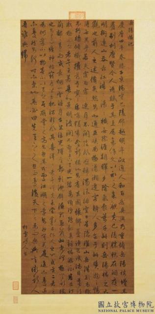 趙孟頫(年代不詳)。[元趙孟頫書岳陽樓記 軸]。《數位典藏與數位學習聯合目錄》。http://catalog.digitalarchives.tw/item/00/11/11/7e.html(2015/11/05瀏覽)。