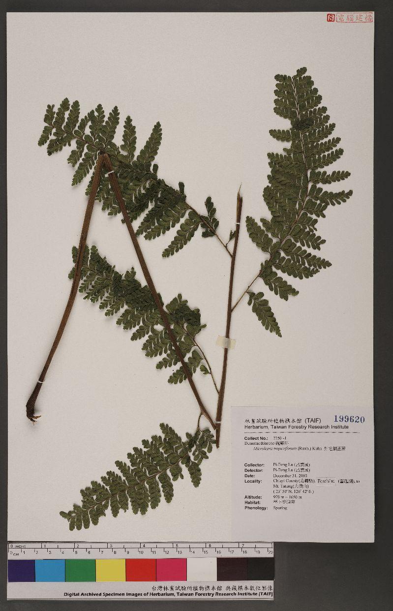 作者不詳(2003-12-31)。[Microlepia trapeziformis (Roxb.) Kuhn 針毛鱗蓋蕨]。《數位典藏與數位學習聯合目錄》。http://catalog.digitalarchives.tw/item/00/26/00/26.html(2013/01/07瀏覽)。
