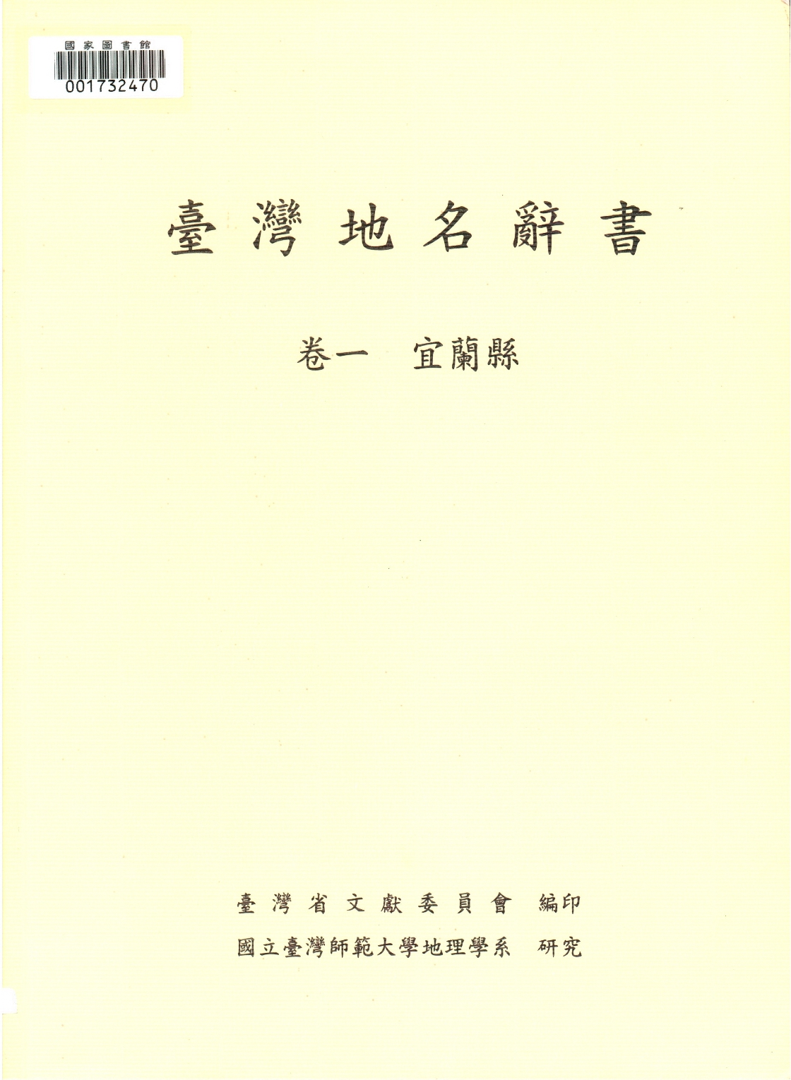 臺灣地名辭書(卷一)宜蘭縣