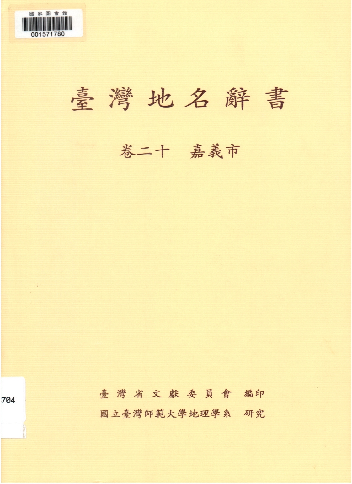 出自:臺灣地名辭書(卷二十)嘉義市