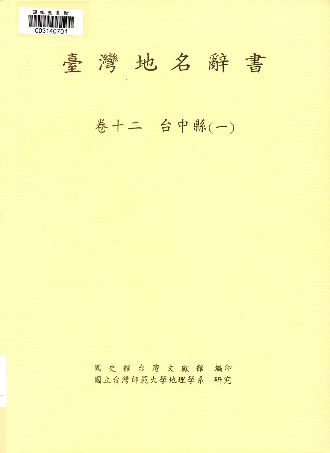 出自:臺灣地名辭書(卷十二)臺中縣(一)