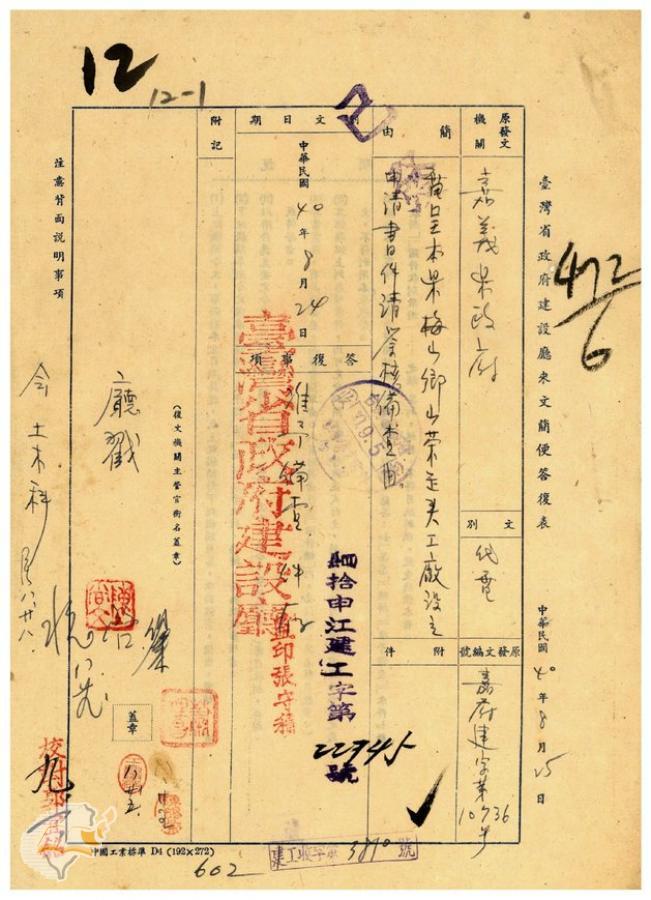 主要發文者:台灣省政府建設廳