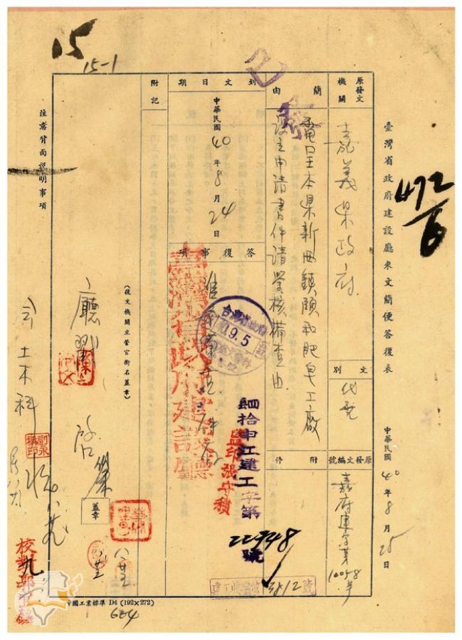 案由:電呈送該縣六腳鄉合發碾米工廠等...