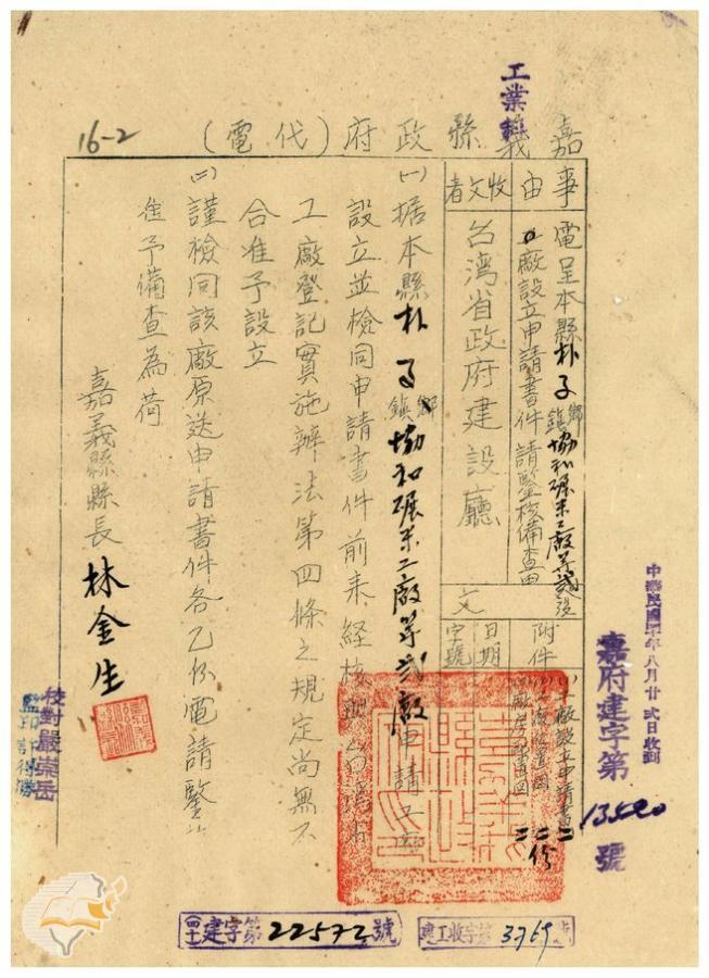 案由:電呈嘉義市大昌製瓦工廠設立申請...