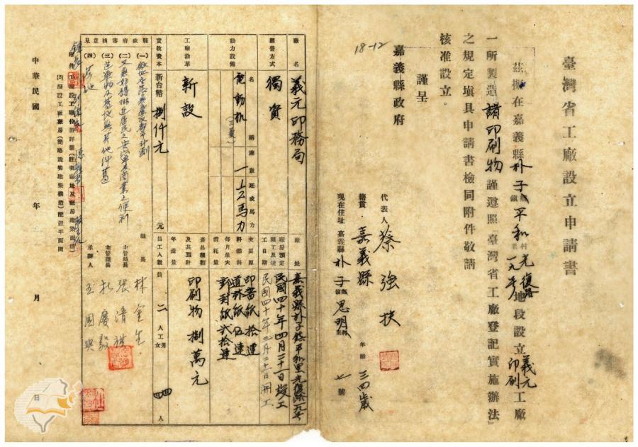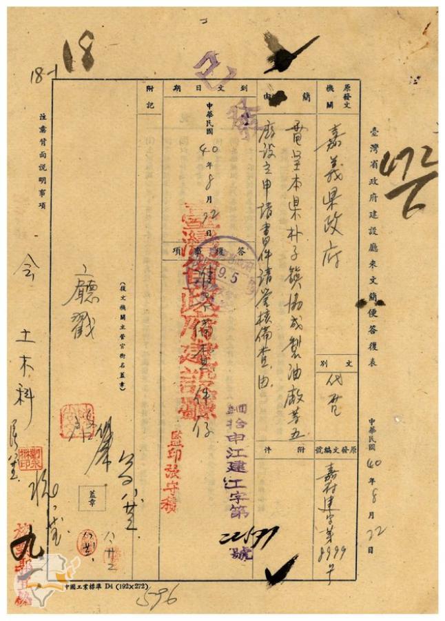 台灣省政府建設廳(1951-09-01)。[案由:電呈本縣朴子鎮協成製油廠等五廠設立申請書件請鑒核備查由]。《數位典藏與數位學習聯合目錄》。http://catalog.digitalarchives.tw/item/00/41/db/79.html(2025/01/03瀏覽)。