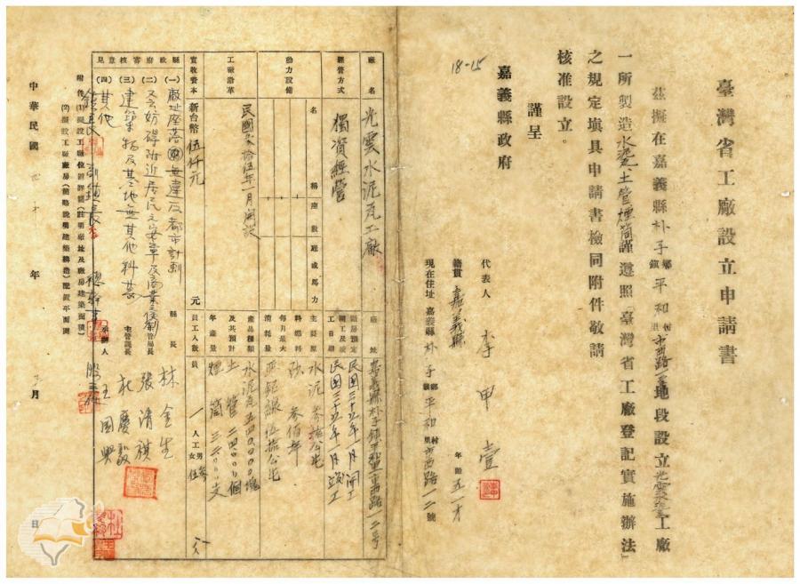 案由:電呈該縣嘉義東陽水泥加工廠設立...