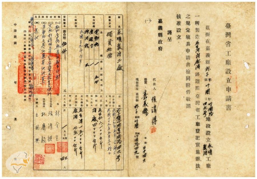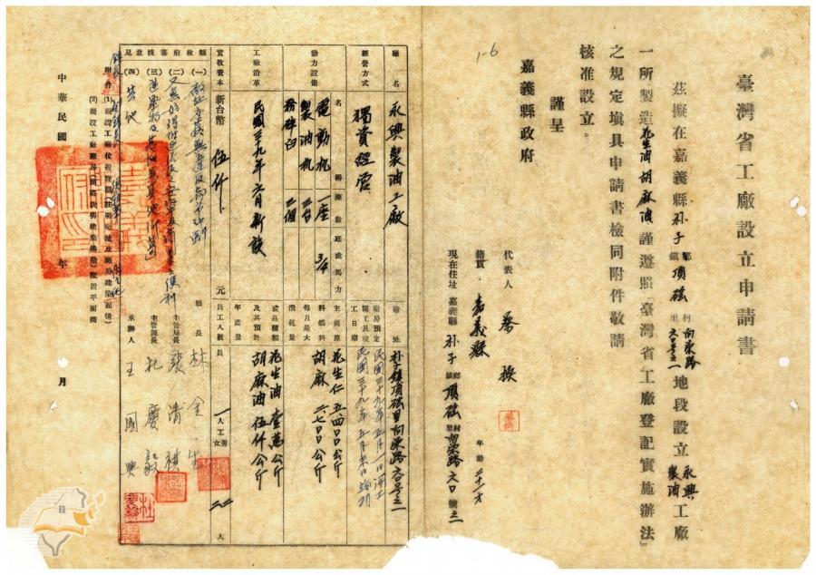 台灣省政府建設廳(1951-09-04)。[案由:電呈本縣朴子鎮永順製油工廠等貳廠設立申請書件請鑒核備查由]。《數位典藏與數位學習聯合目錄》。http://catalog.digitalarchives.tw/item/00/41/db/7c.html(2025/01/03瀏覽)。