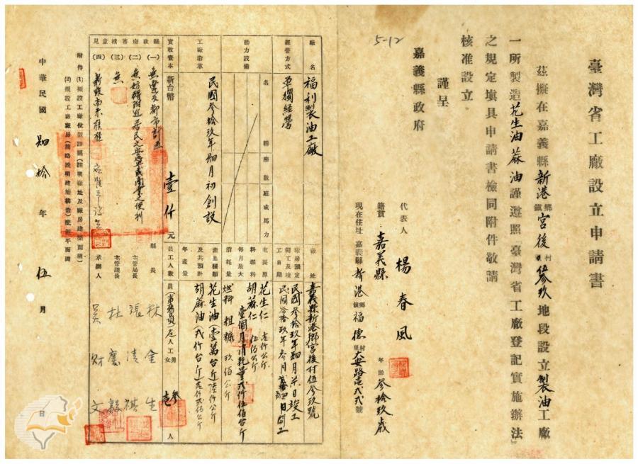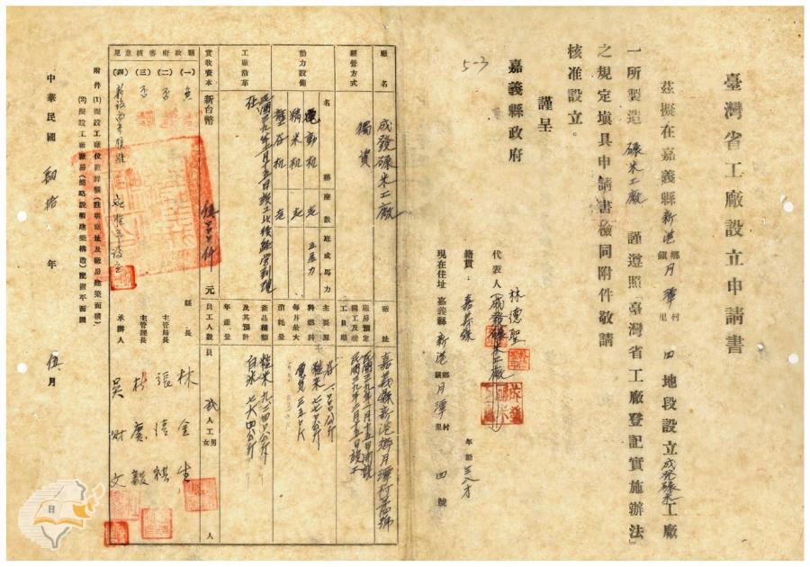 台灣省政府建設廳(1951-09-07)。[案由:電呈本縣新港鄉成發碾米工廠等五家工廠設立申請書件請鑒核備查由]。《數位典藏與數位學習聯合目錄》。http://catalog.digitalarchives.tw/item/00/41/db/80.html(2025/01/03瀏覽)。