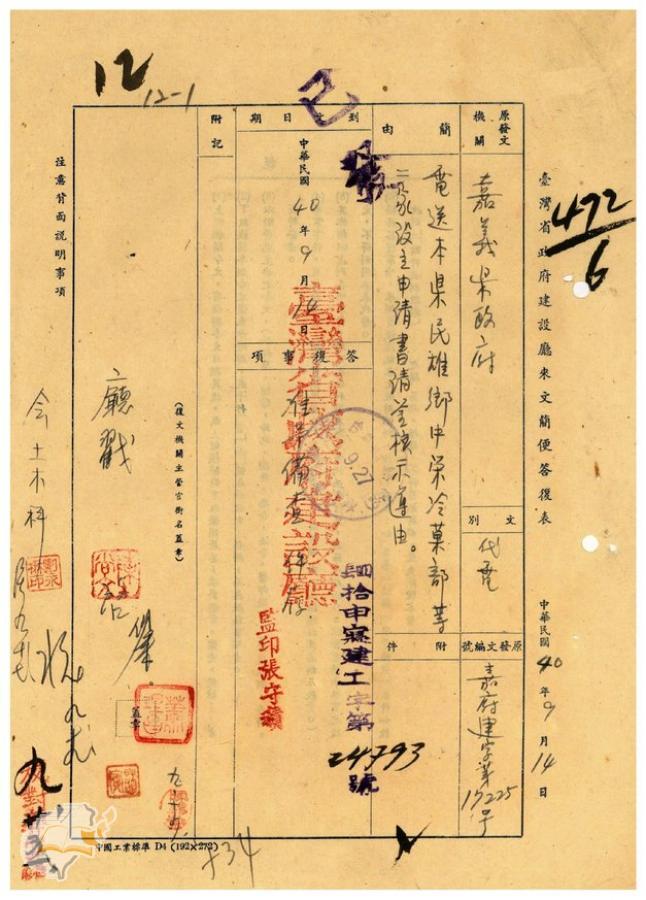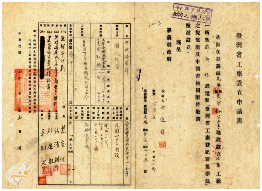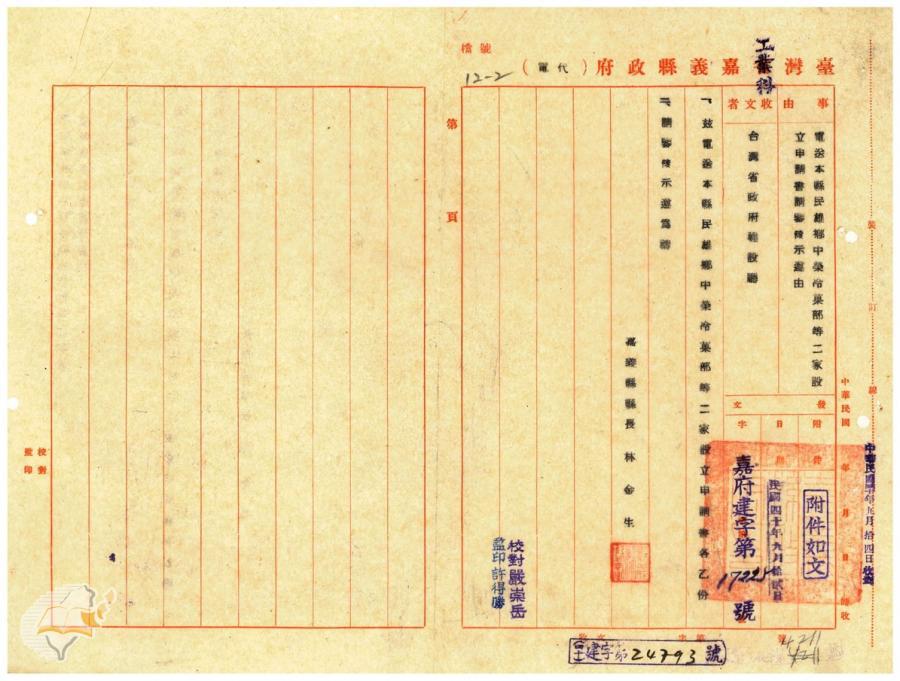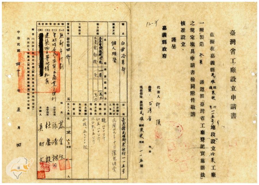 台灣省政府建設廳(1951-09-25)。[案由:電送本縣民雄鄉中榮冷果部等設立申請書請鑒核示遵由]。《數位典藏與數位學習聯合目錄》。http://catalog.digitalarchives.tw/item/00/41/db/87.html(2025/01/03瀏覽)。