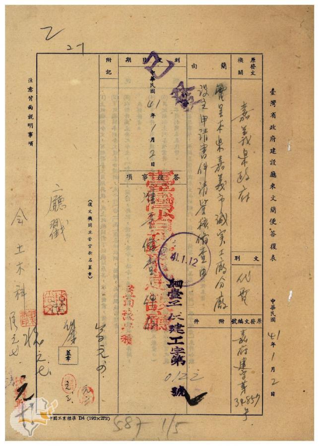 主要發文者:臺灣省政府建設廳