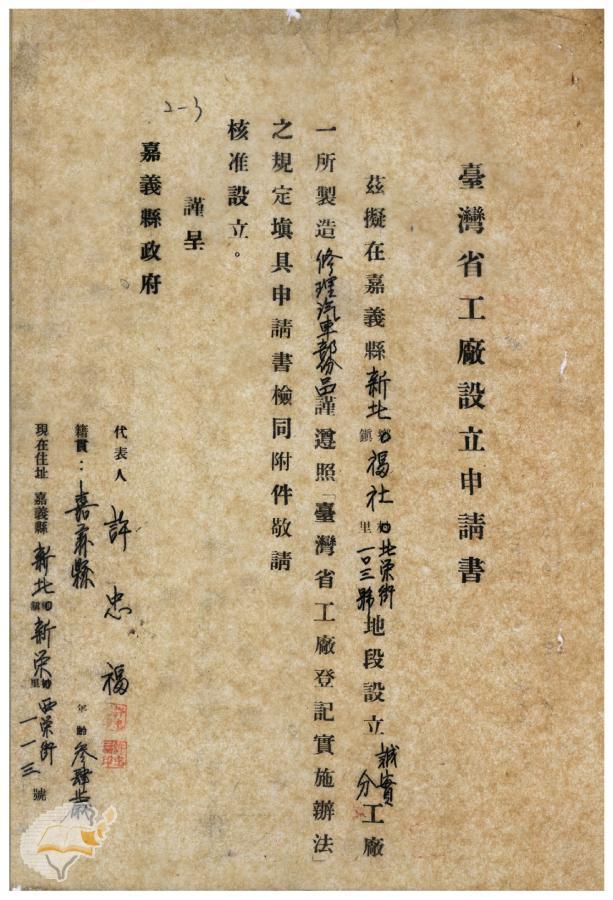 案由:電呈嘉義縣嘉義市大木器工廠設立...