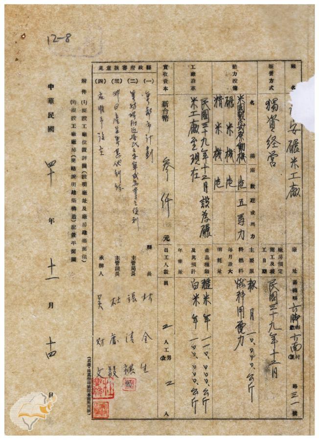 案由:電呈送該縣嘉義市年豐碾米工廠設...