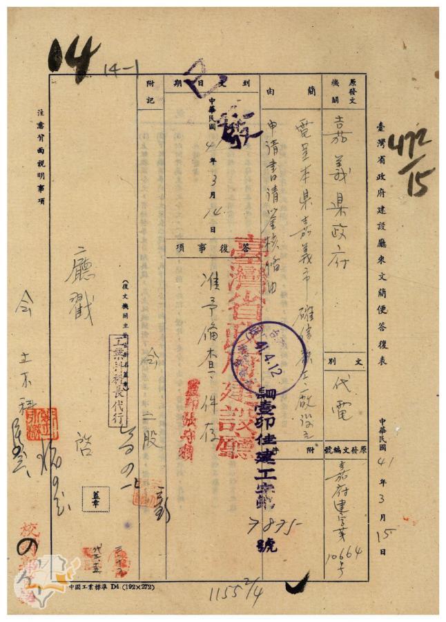 主要發文者:臺灣省政府建設廳
