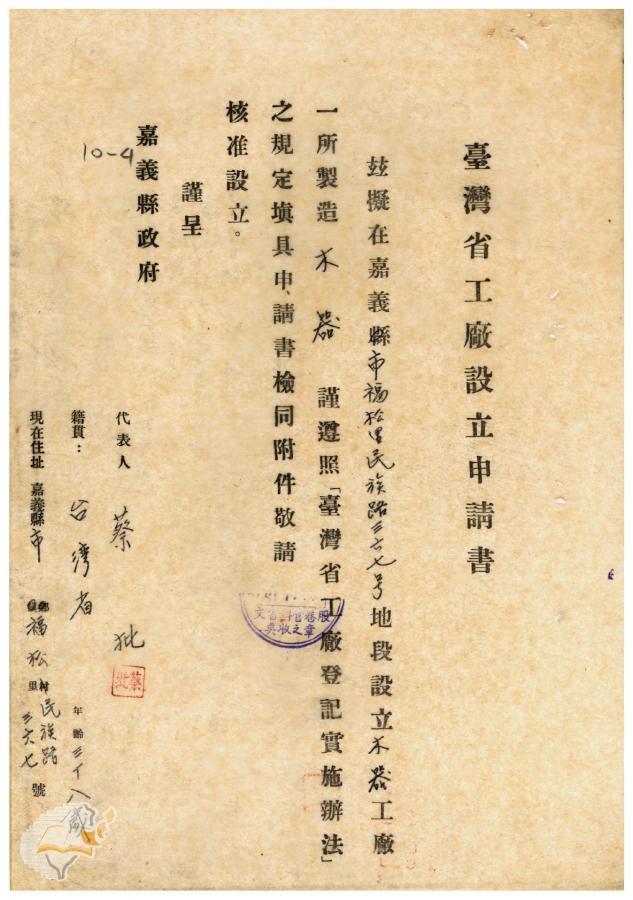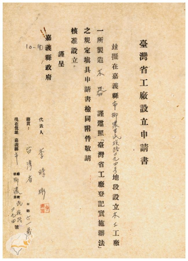 案由:電呈該縣嘉義市臺澎機器工廠設立...