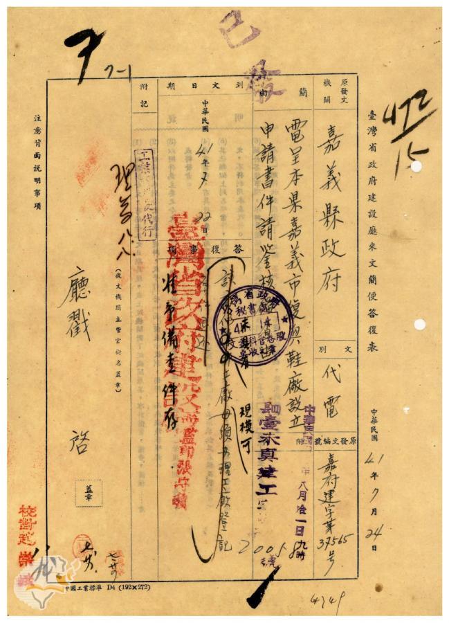 主要發文者:臺灣省政府建設廳