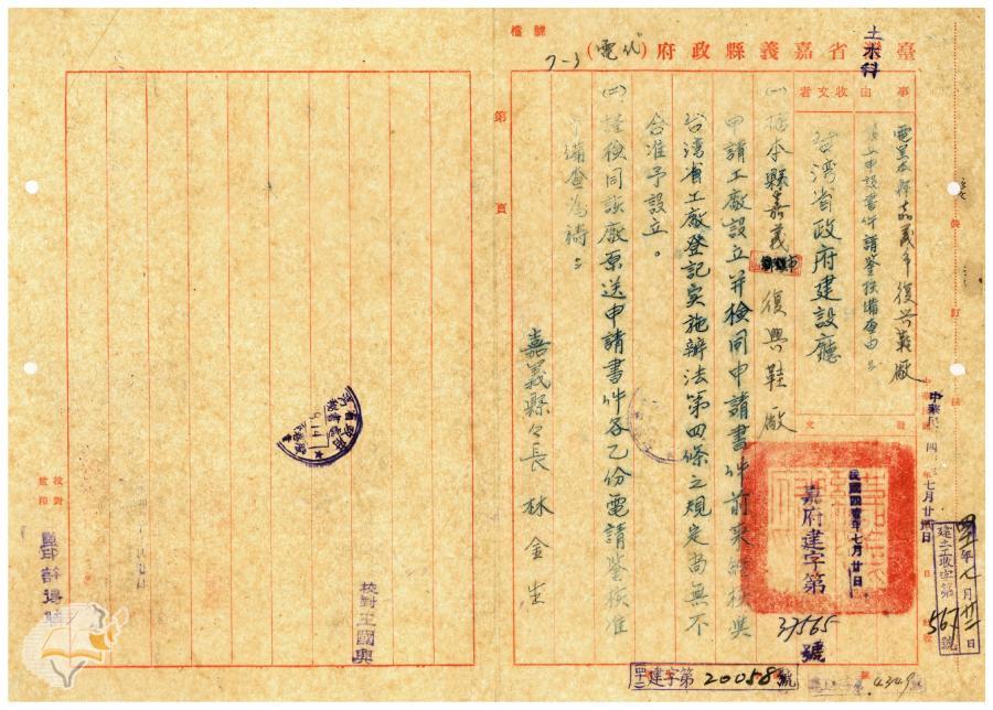 案由:電呈嘉義市大昌製瓦工廠設立申請...