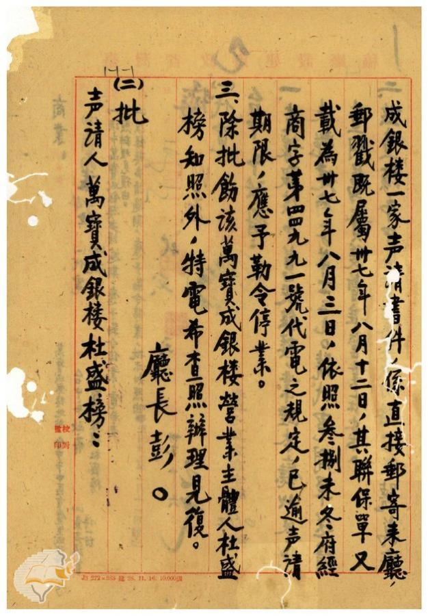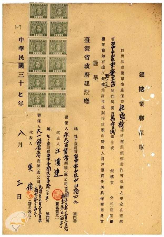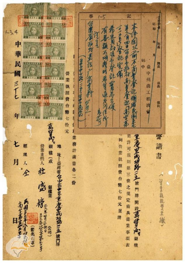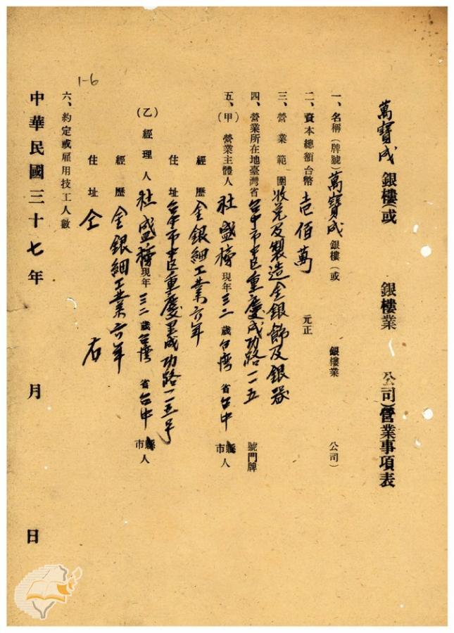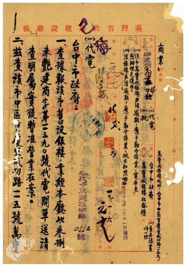台灣省政府建設廳(1950-01-11)。[案由:台中市萬寶成銀樓聲請逾期應予勒令停業電希查照辦理見復由]。《數位典藏與數位學習聯合目錄》。http://catalog.digitalarchives.tw/item/00/42/22/6d.html(2025/01/03瀏覽)。
