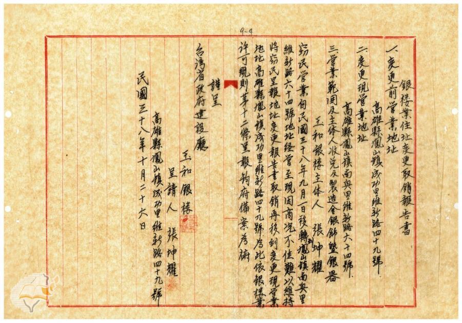 台灣省政府建設廳(1950-01-28)。[案由:據轉報程琦、張坤耀等兩名呈請變更銀樓營業所在地一案應准備查由]。《數位典藏與數位學習聯合目錄》。http://catalog.digitalarchives.tw/item/00/42/22/75.html(2025/01/03瀏覽)。