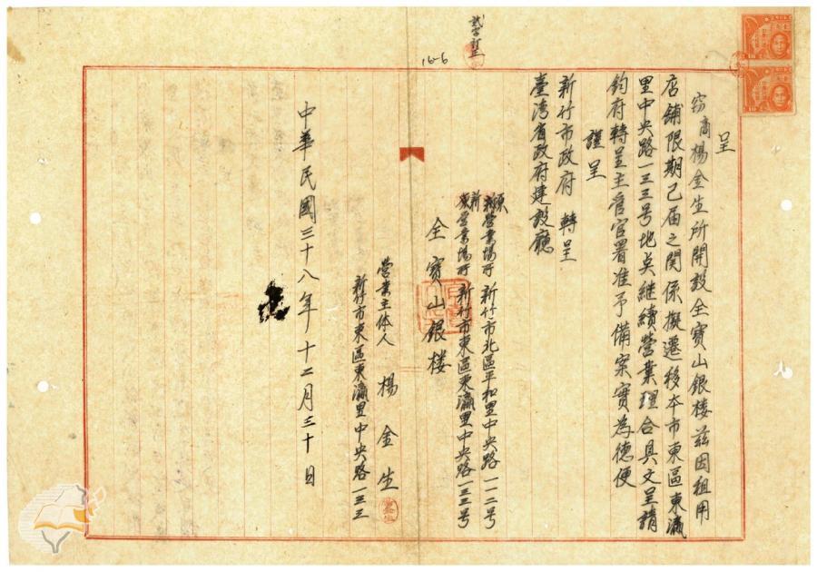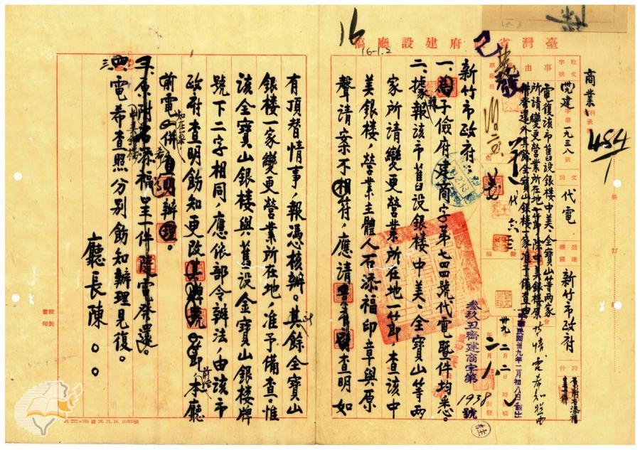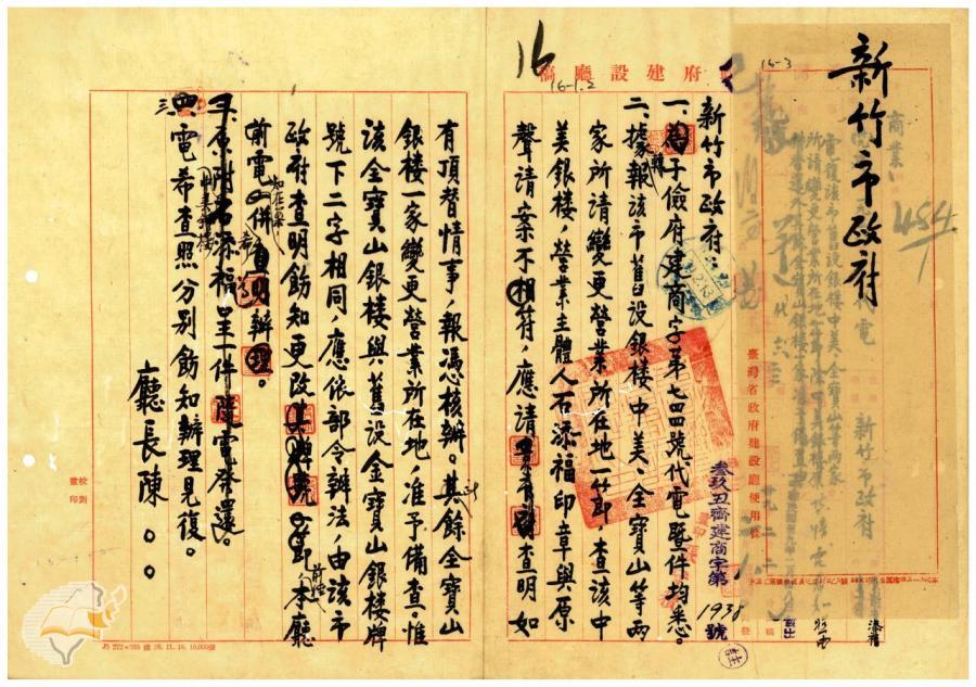 台灣省政府建設廳(1950-02-08)。[案由:電復新竹市舊設銀樓中美、全寶山等兩家所請變更營業所在地]。《數位典藏與數位學習聯合目錄》。http://catalog.digitalarchives.tw/item/00/42/22/7c.html(2025/01/03瀏覽)。