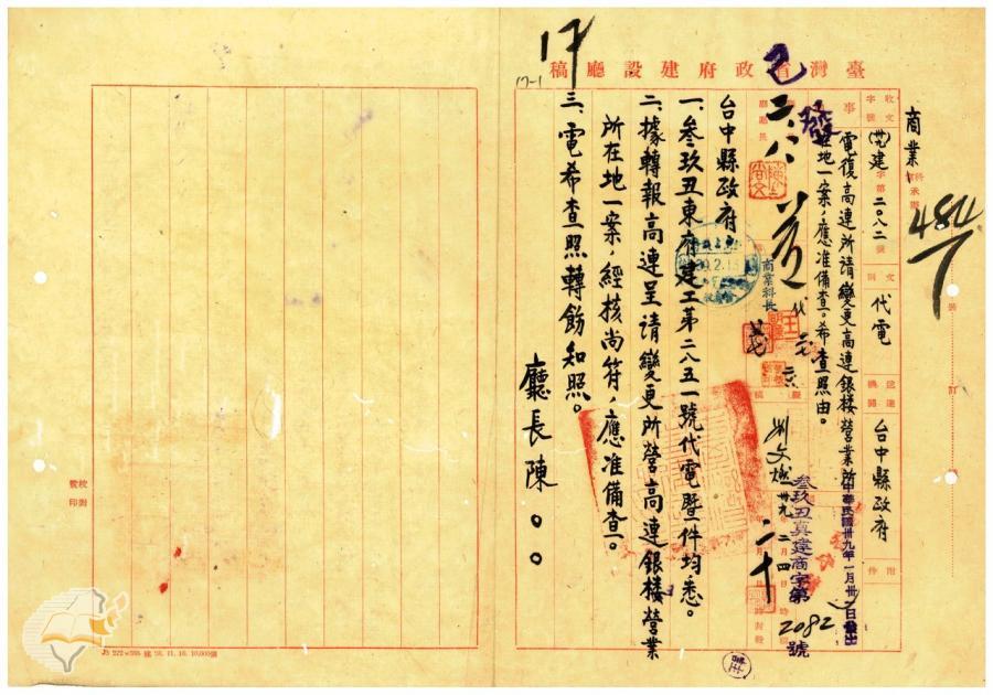 台灣省政府建設廳(1950-01-31)。[案由:電復高連所請變更高連銀樓營業所在地一案應准備查希查照由]。《數位典藏與數位學習聯合目錄》。http://catalog.digitalarchives.tw/item/00/42/22/7d.html(2025/01/03瀏覽)。