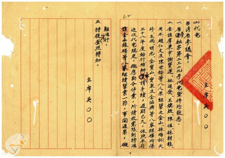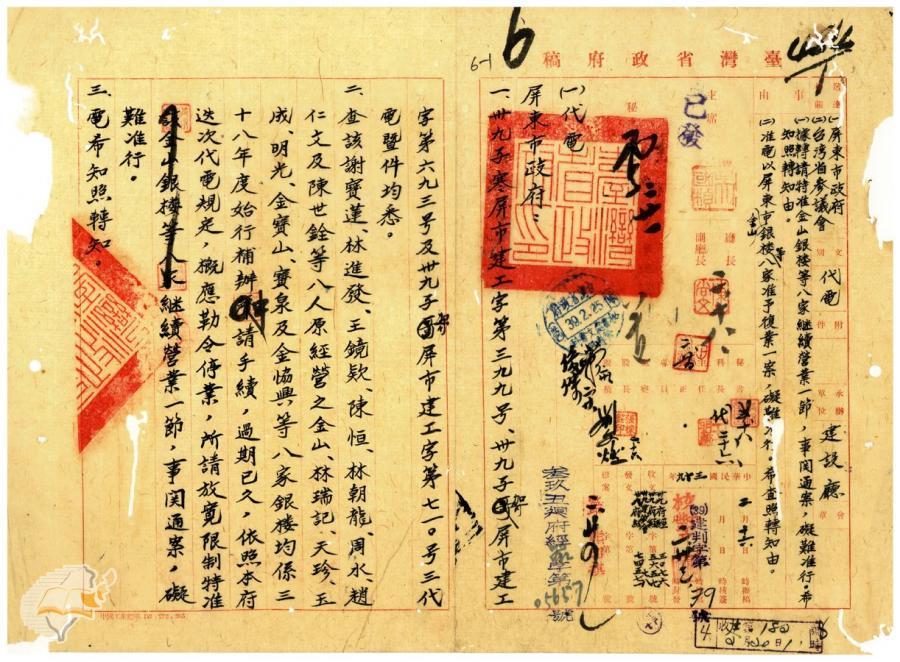 台灣省政府(1950-02-21)。[案由:據轉請特准金山銀樓等八家繼續營業一節事關通案礙難准行希知照轉知由]。《數位典藏與數位學習聯合目錄》。http://catalog.digitalarchives.tw/item/00/42/22/86.html(2025/01/03瀏覽)。