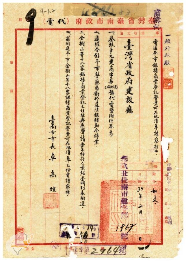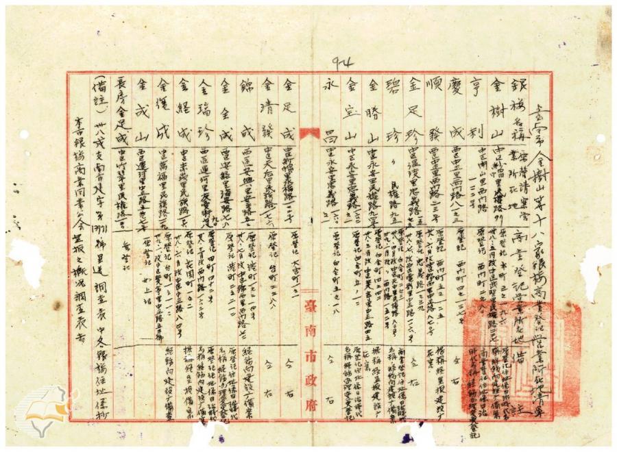 台南市政府(1950-03-14)。[案由:電送台南市銀樓商業登記營業所在地清單請察核由]。《數位典藏與數位學習聯合目錄》。http://catalog.digitalarchives.tw/item/00/42/22/89.html(2025/01/03瀏覽)。