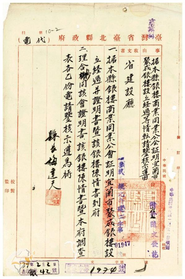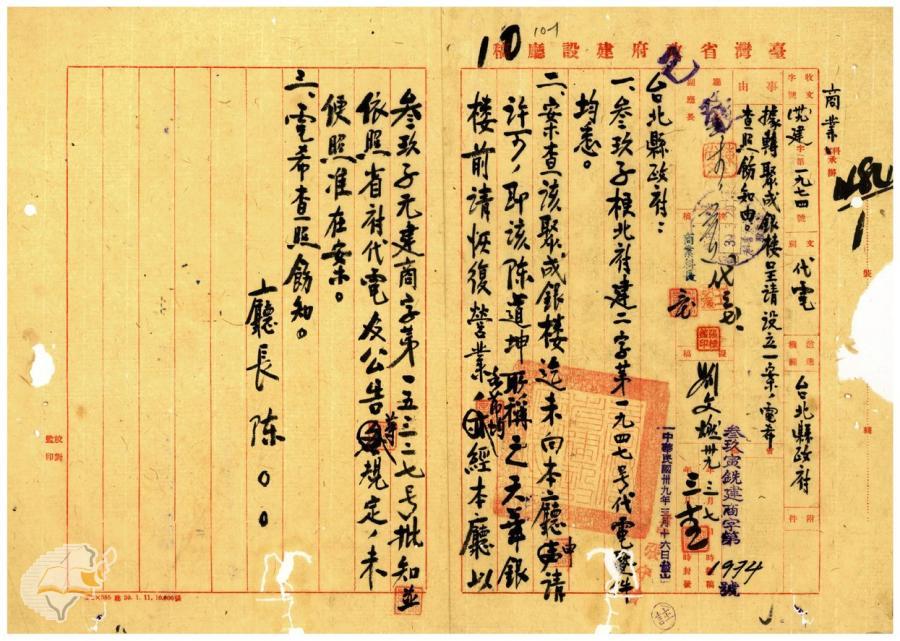 台灣省政府建設廳(1950-03-16)。[案由:據轉聚成銀樓呈請設立一案電希查照飭知由]。《數位典藏與數位學習聯合目錄》。http://catalog.digitalarchives.tw/item/00/42/22/8a.html(2025/01/03瀏覽)。