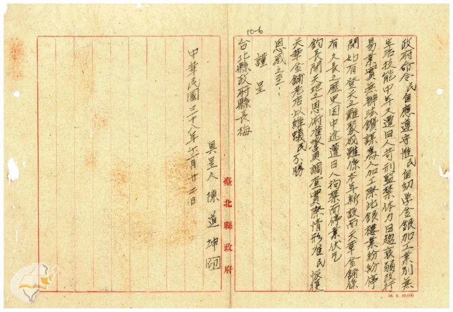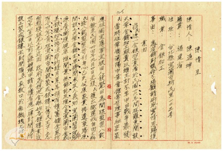 案由:關於陳一飛君所詢開設銀樓問題通...