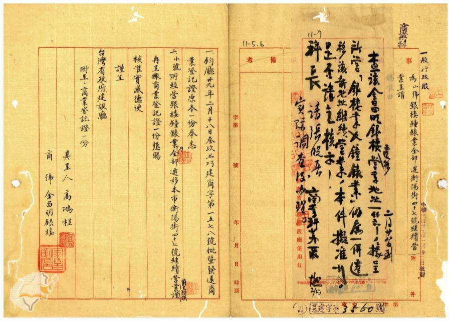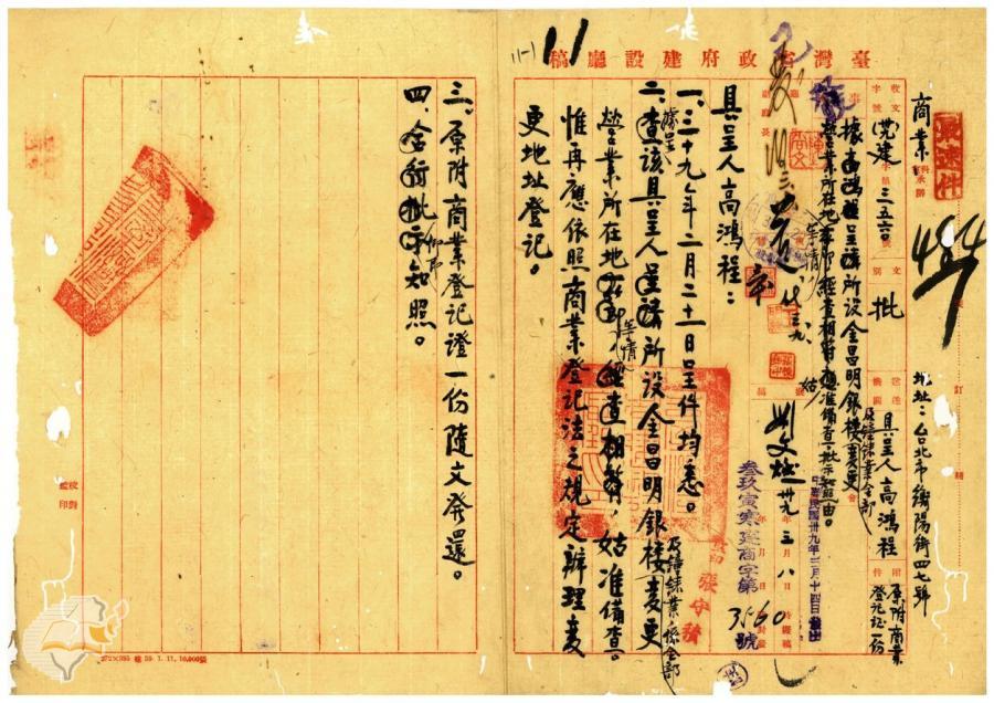台灣省政府建設廳(1950-03-14)。[案由:據高鴻程呈所設金昌明銀樓及鐘錶業全部變更營業所在地等情姑准備查批示知照由]。《數位典藏與數位學習聯合目錄》。http://catalog.digitalarchives.tw/item/00/42/22/8b.html(2025/01/03瀏覽)。