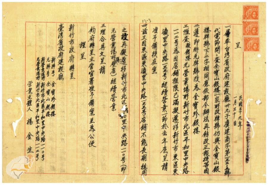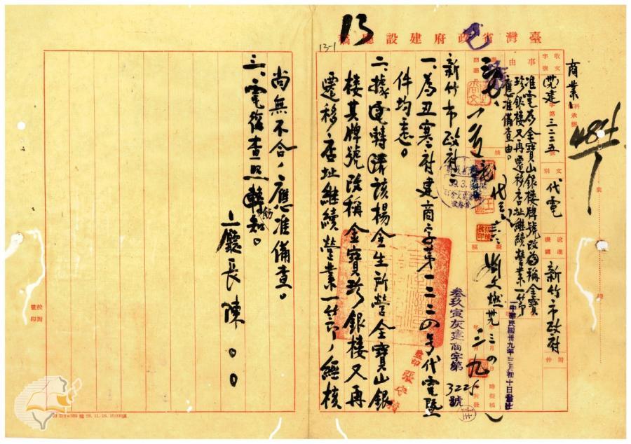 台灣省政府建設廳(1950-03-10)。[案由:准電為全寶山銀樓牌號改稱全寶珍銀樓又再遷移店址繼續營業一節應准備查由]。《數位典藏與數位學習聯合目錄》。http://catalog.digitalarchives.tw/item/00/42/22/8d.html(2025/01/03瀏覽)。