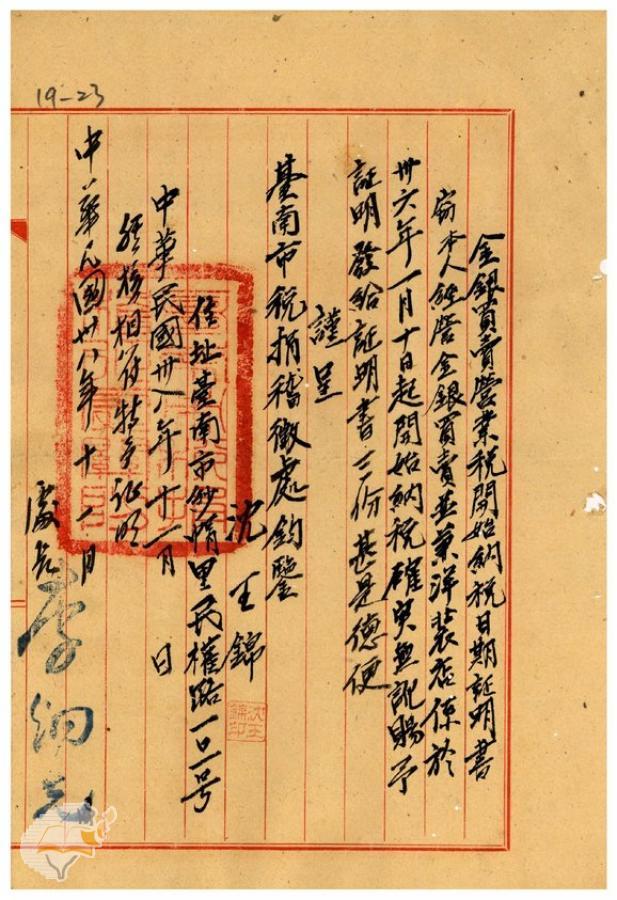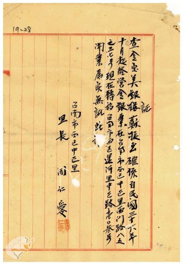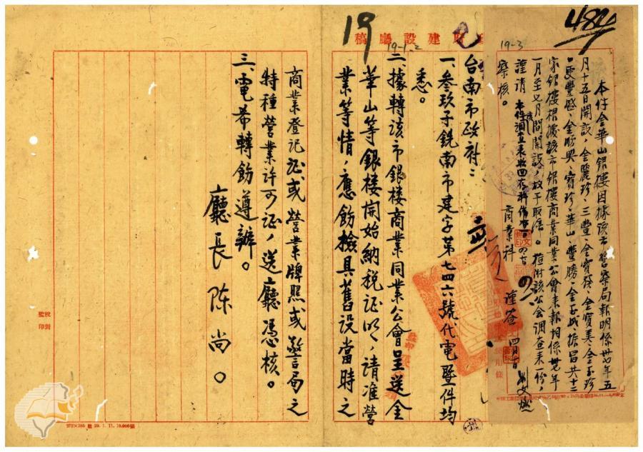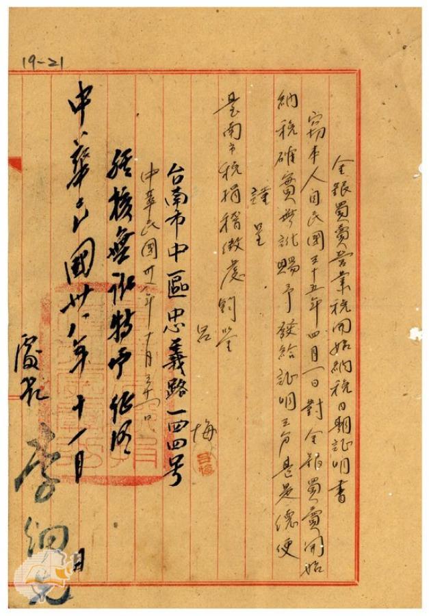案由:據轉台南市銀樓商業同業公會呈送金華山等銀樓開始納稅証照請准營業等情電希轉飭遵辦由