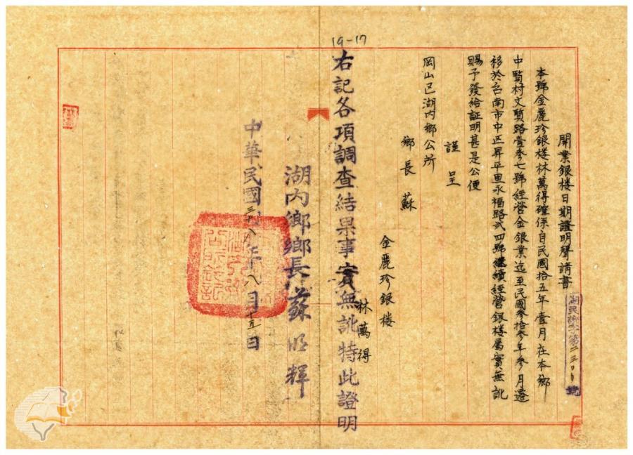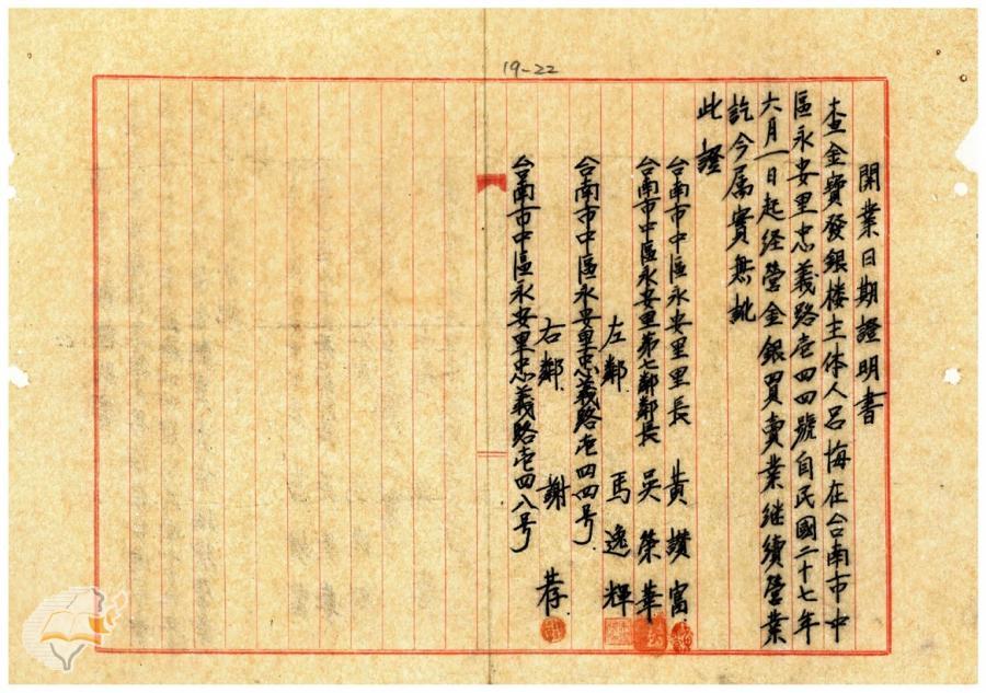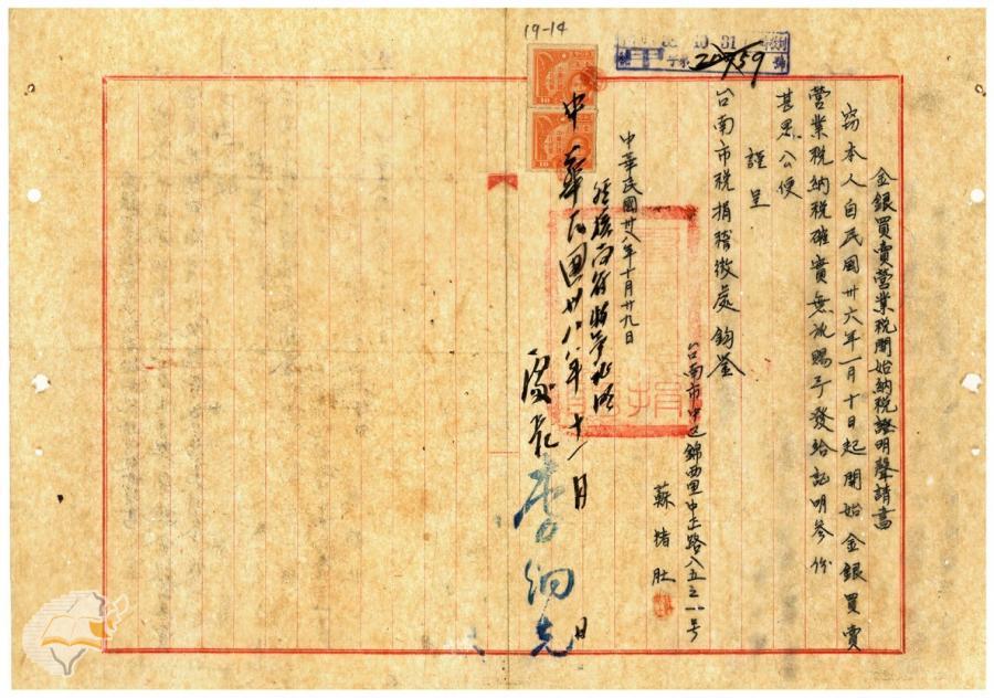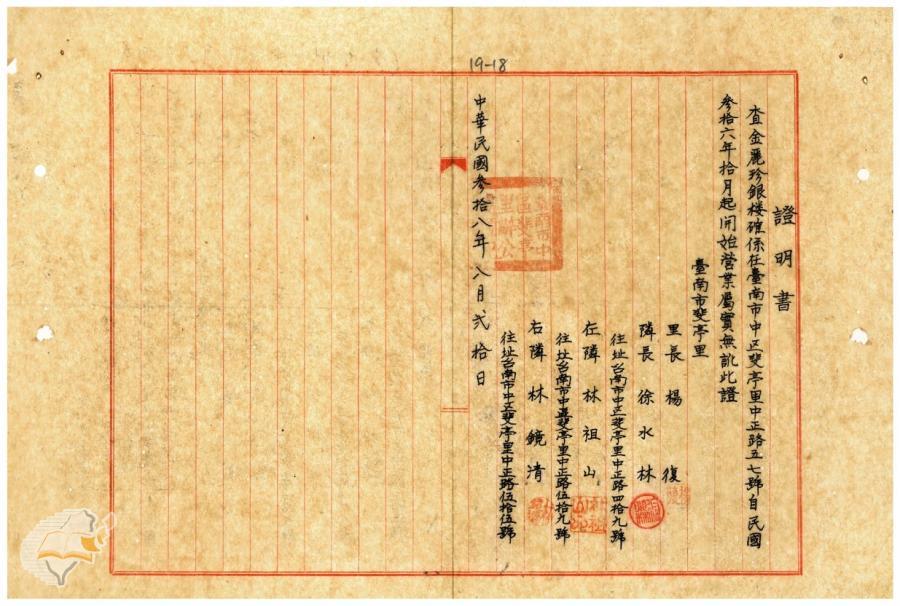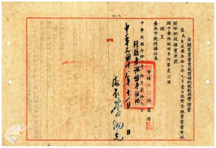 台灣省政府建設廳(1950-04-07)。[案由:據轉台南市銀樓商業同業公會呈送金華山等銀樓開始納稅証照請准營業等情電希轉飭遵辦由]。《數位典藏與數位學習聯合目錄》。http://catalog.digitalarchives.tw/item/00/42/22/93.html(2025/01/03瀏覽)。