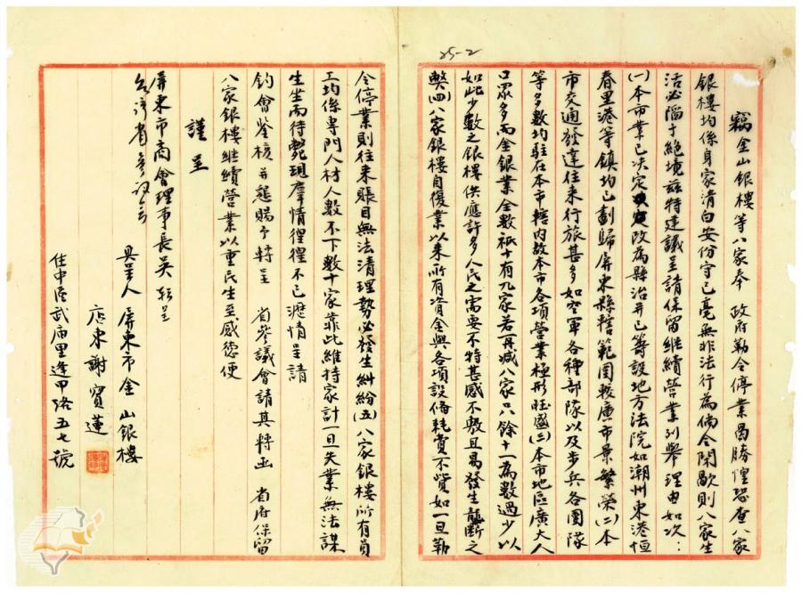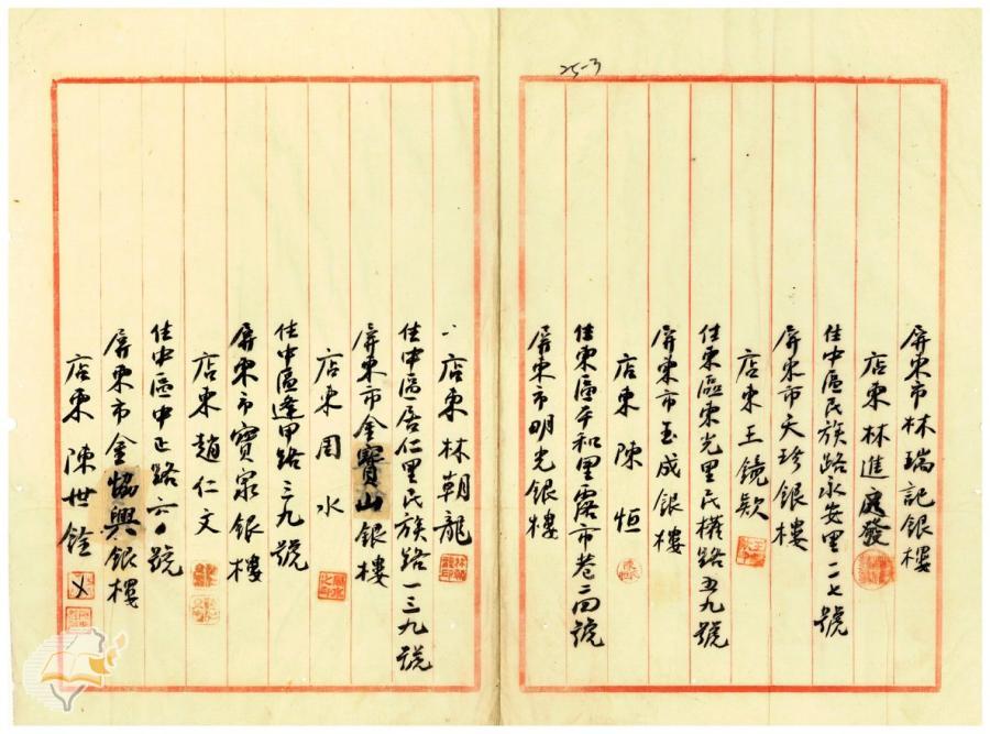 台灣省參議會(1949-12-22)。[案由:准電以建議屏東市銀樓八家准予復案一案送請查照核辦見復由]。《數位典藏與數位學習聯合目錄》。http://catalog.digitalarchives.tw/item/00/42/22/99.html(2025/01/03瀏覽)。
