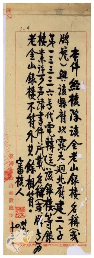 台灣省政府建設廳(1950-04-22)。[案由:據報台北縣老金山等六家銀樓申請日期一節希查照見復由]。《數位典藏與數位學習聯合目錄》。http://catalog.digitalarchives.tw/item/00/42/22/9a.html(2025/01/03瀏覽)。