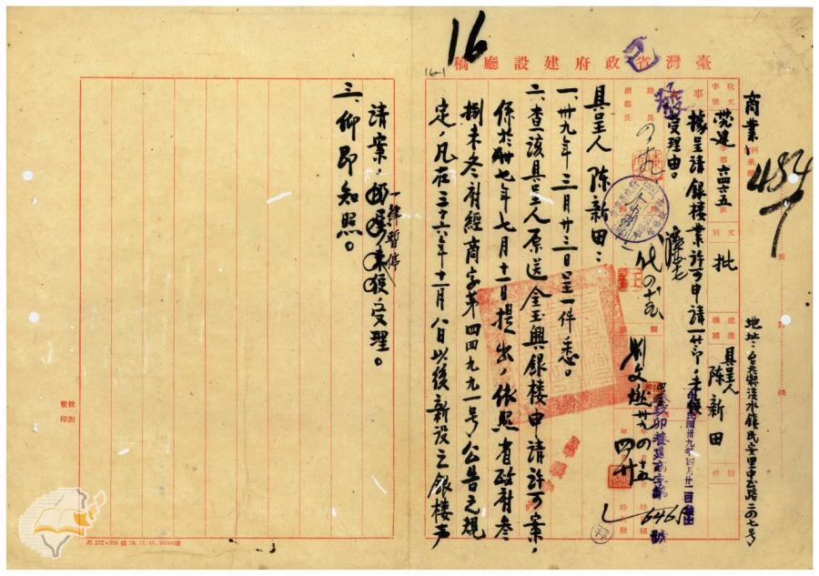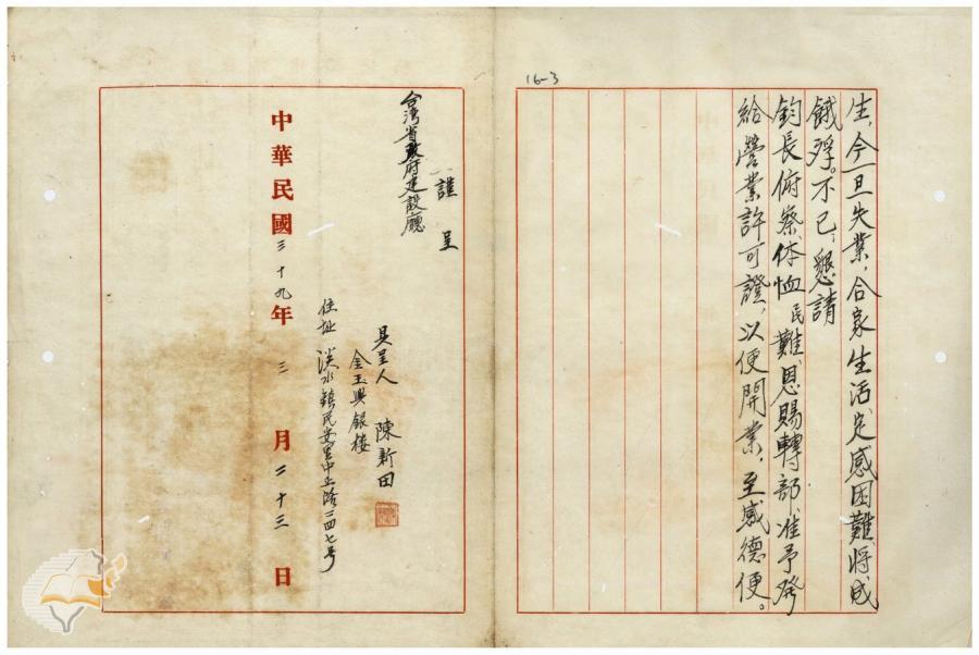 台灣省政府建設廳(1950-04-22)。[案由:據陳新田呈請銀樓業許可申請一節未便受理由]。《數位典藏與數位學習聯合目錄》。http://catalog.digitalarchives.tw/item/00/42/22/a8.html(2025/01/03瀏覽)。