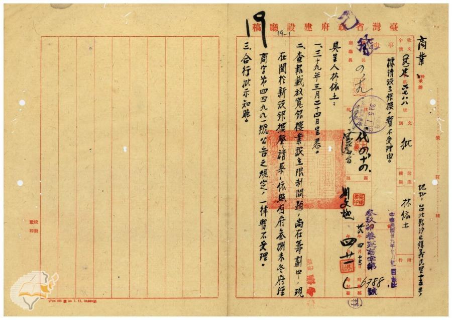 台灣省政府建設廳(1950-04-22)。[案由:據林依土請設立銀樓暫不受理由]。《數位典藏與數位學習聯合目錄》。http://catalog.digitalarchives.tw/item/00/42/22/ab.html(2025/01/03瀏覽)。