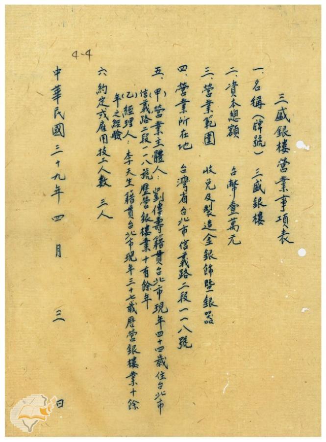 台灣省政府建設廳(1950-04-13)。[案由:據三盛銀樓劉傳壽呈請變更經理人一節准予備查由]。《數位典藏與數位學習聯合目錄》。http://catalog.digitalarchives.tw/item/00/42/22/b4.html(2025/01/03瀏覽)。
