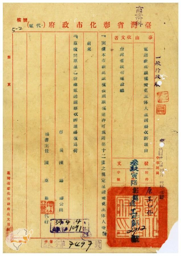 案由:准電送彰化市舊設新高銀樓呈請變更營業主體人為李梗一節應准備查由