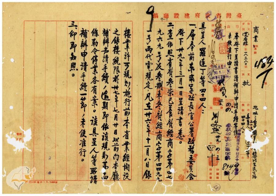 台灣省政府建設廳(1950-04-11)。[案由:奉發下羅連丁等呈請書請補辦申請手續等情未便准行由]。《數位典藏與數位學習聯合目錄》。http://catalog.digitalarchives.tw/item/00/42/22/b9.html(2025/01/03瀏覽)。