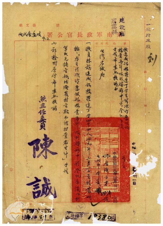 主要來文者:東南軍政長官公署