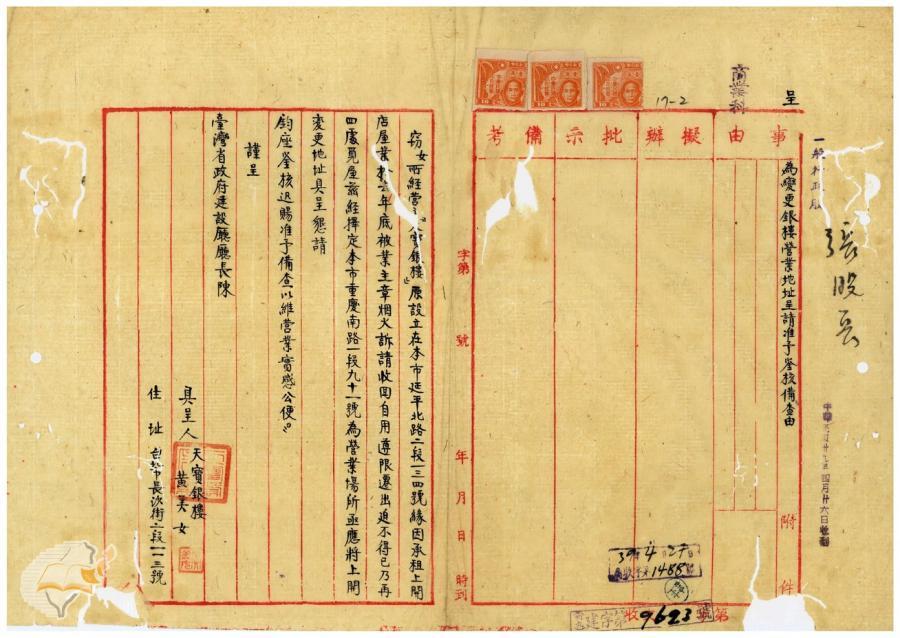 台灣省政府建設廳(1950-05-12)。[案由:據天寶銀樓黃美女呈請變更營業所在地一節准予備查由]。《數位典藏與數位學習聯合目錄》。http://catalog.digitalarchives.tw/item/00/42/22/c1.html(2025/01/03瀏覽)。