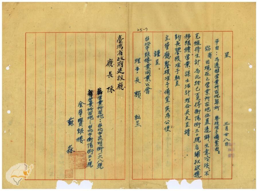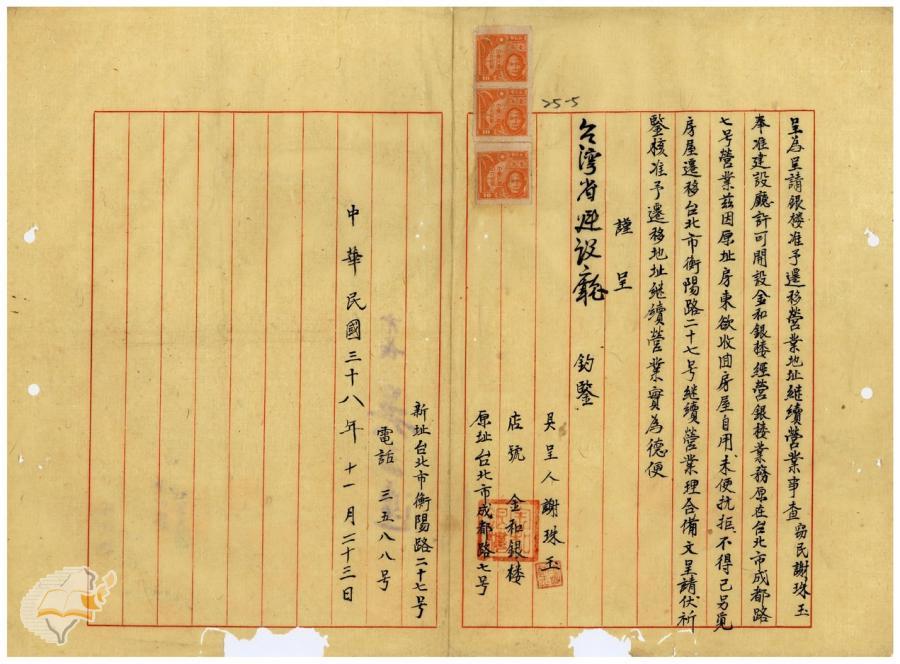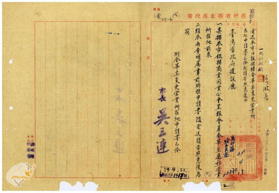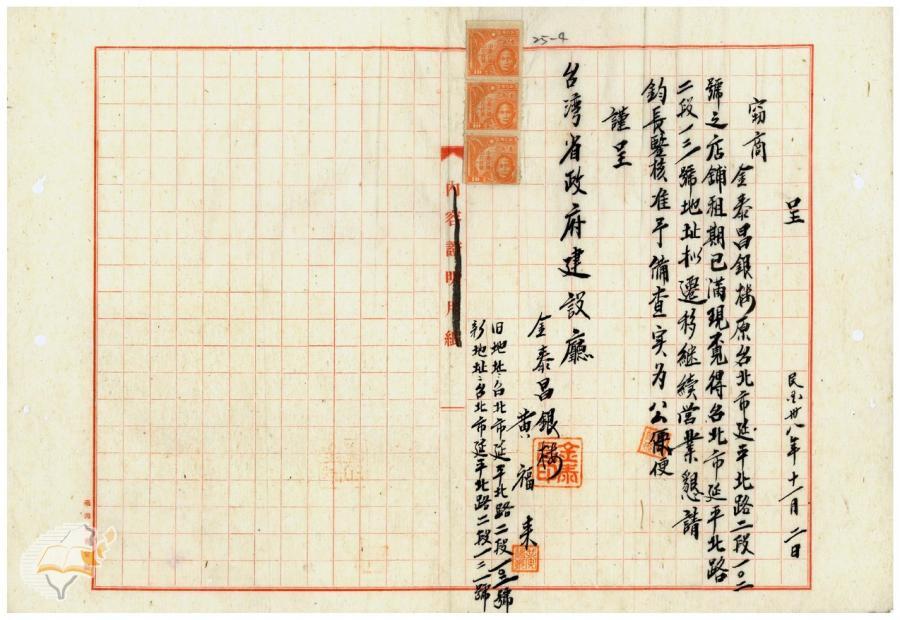 台北市政府(1950-04-17)。[案由:准電補送舊設銀樓金中華、金泰昌、金和等三家之營業所在地變更申請書請查照由]。《數位典藏與數位學習聯合目錄》。http://catalog.digitalarchives.tw/item/00/42/22/c9.html(2025/01/03瀏覽)。